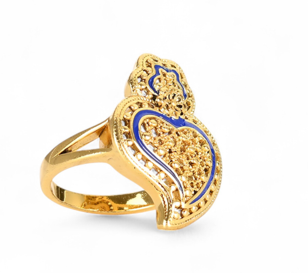 Anel Coração de Viana em Aço Inoxidável Dourado - Ícone do Amor Minhoto
