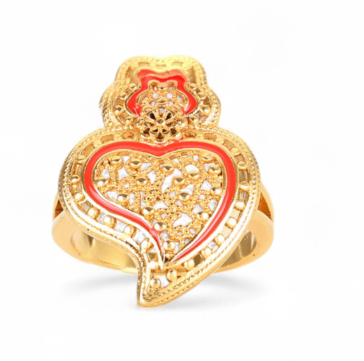 Anel Coração de Viana | Aço Inoxidável Dourado | Alma de Portugal