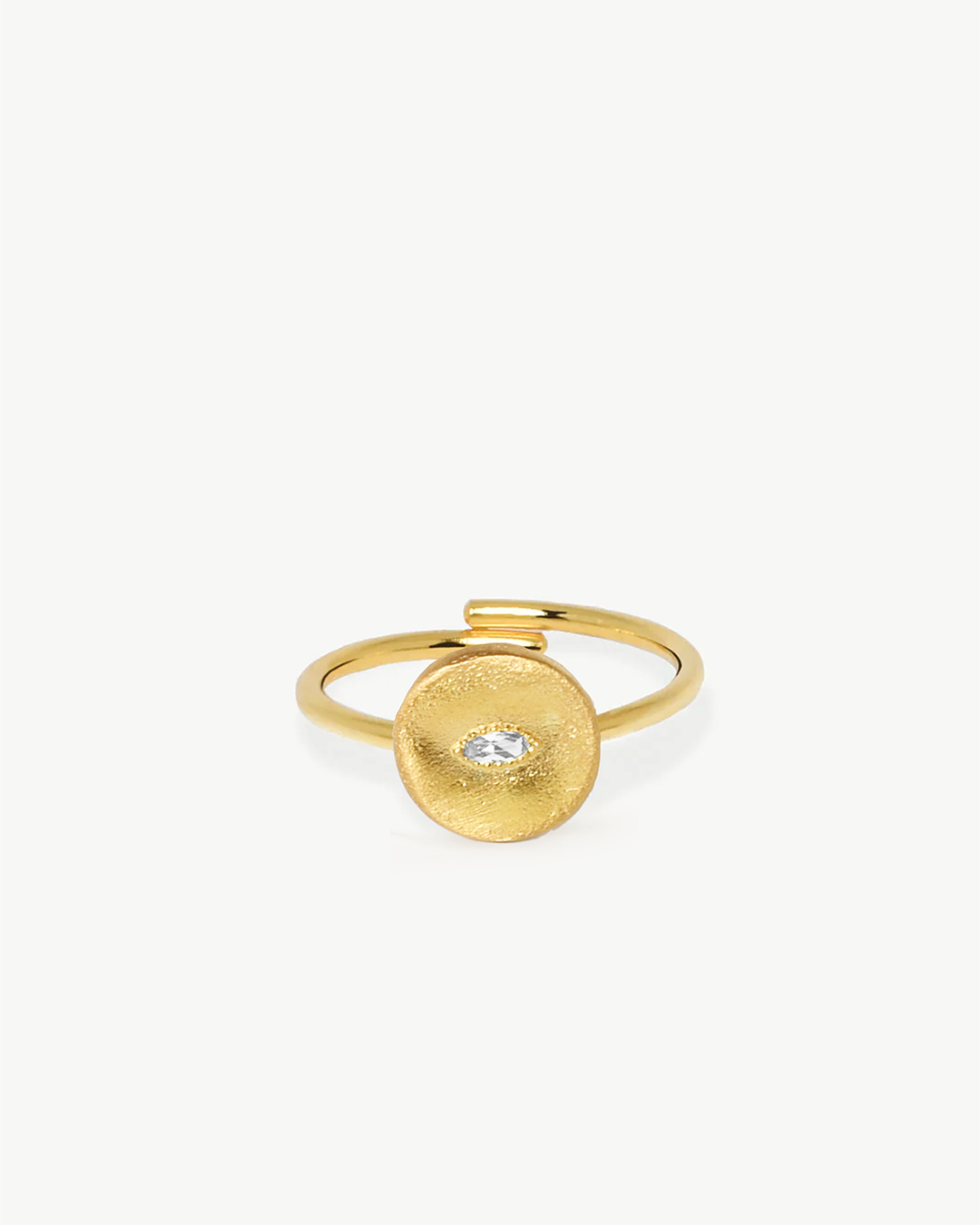 Anel ajustável em prata 925 e banho de ouro 18K com pendente redondo irregular e zircónia cúbica colorida
