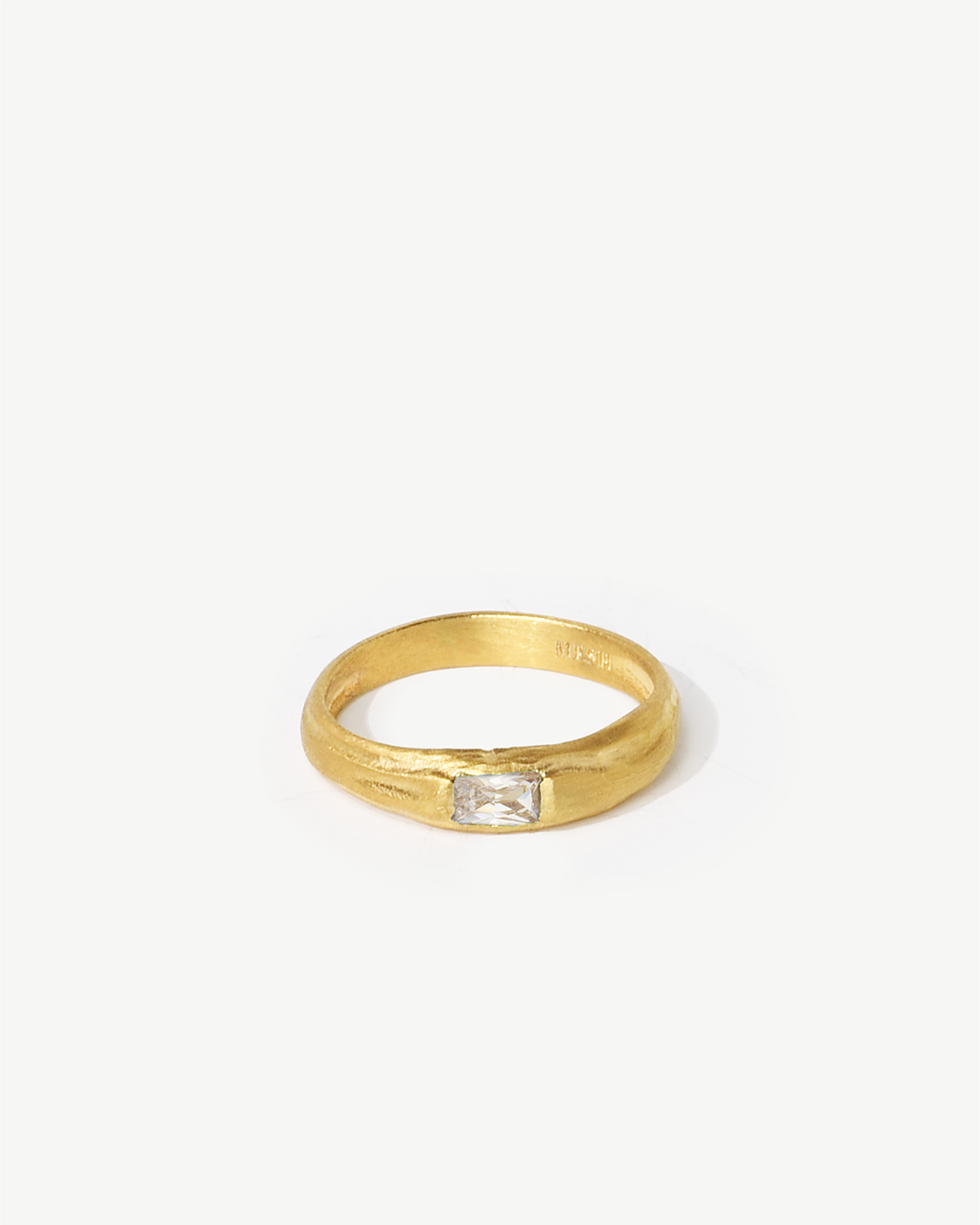 Anel irregular em prata 925 com banho de ouro 18K e zircónia cúbica retangular colorida