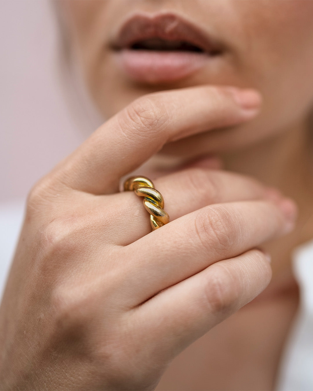 Anel torcido em prata 925 com banho de ouro 18K ou ródio