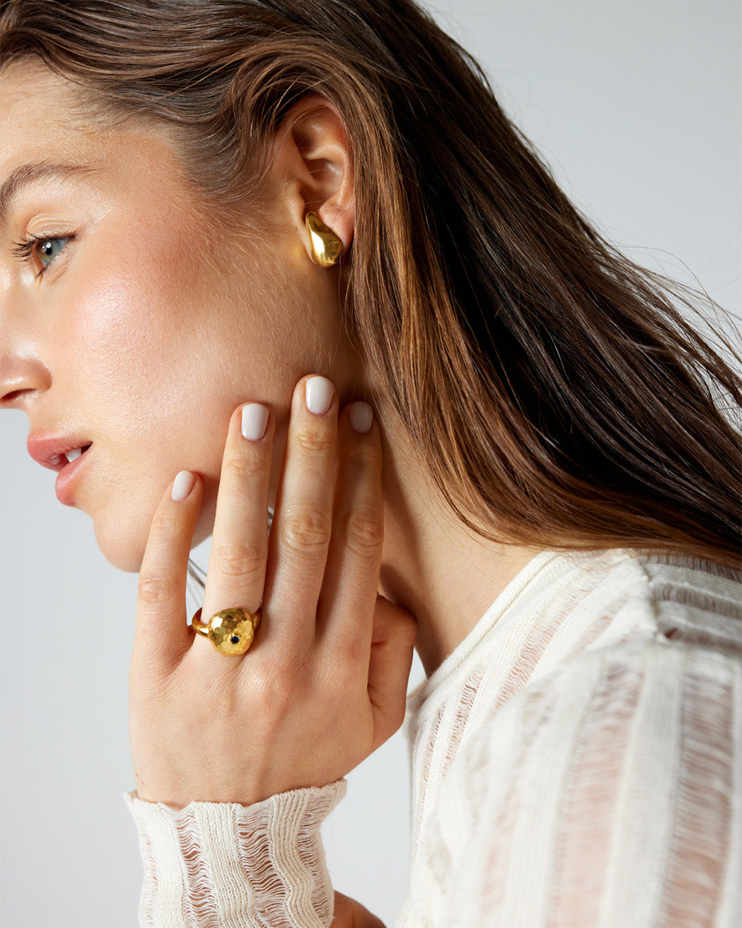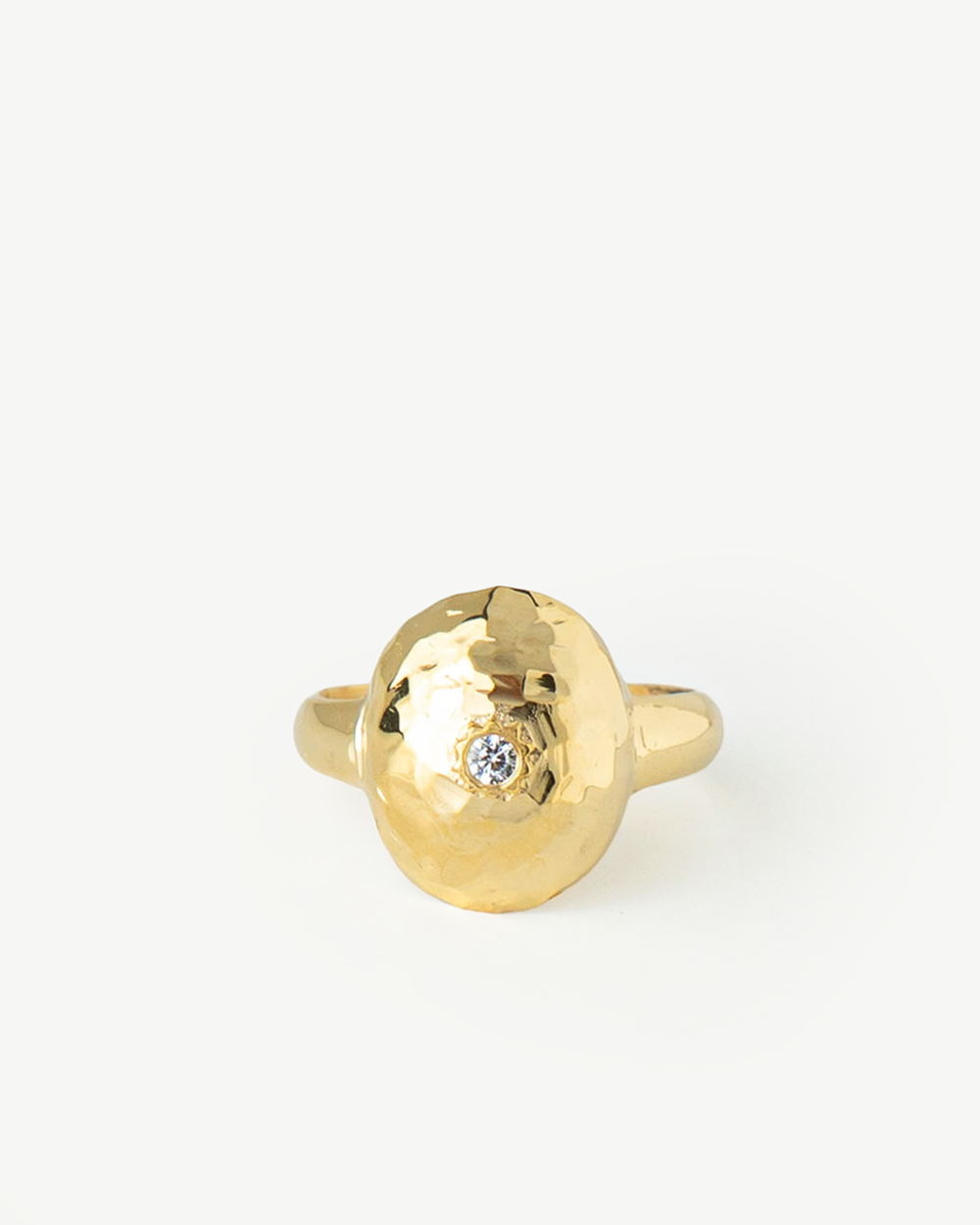 Anel em prata 925 com banho de ouro ou ródio em efeito martelado com zircónia cúbica no centro