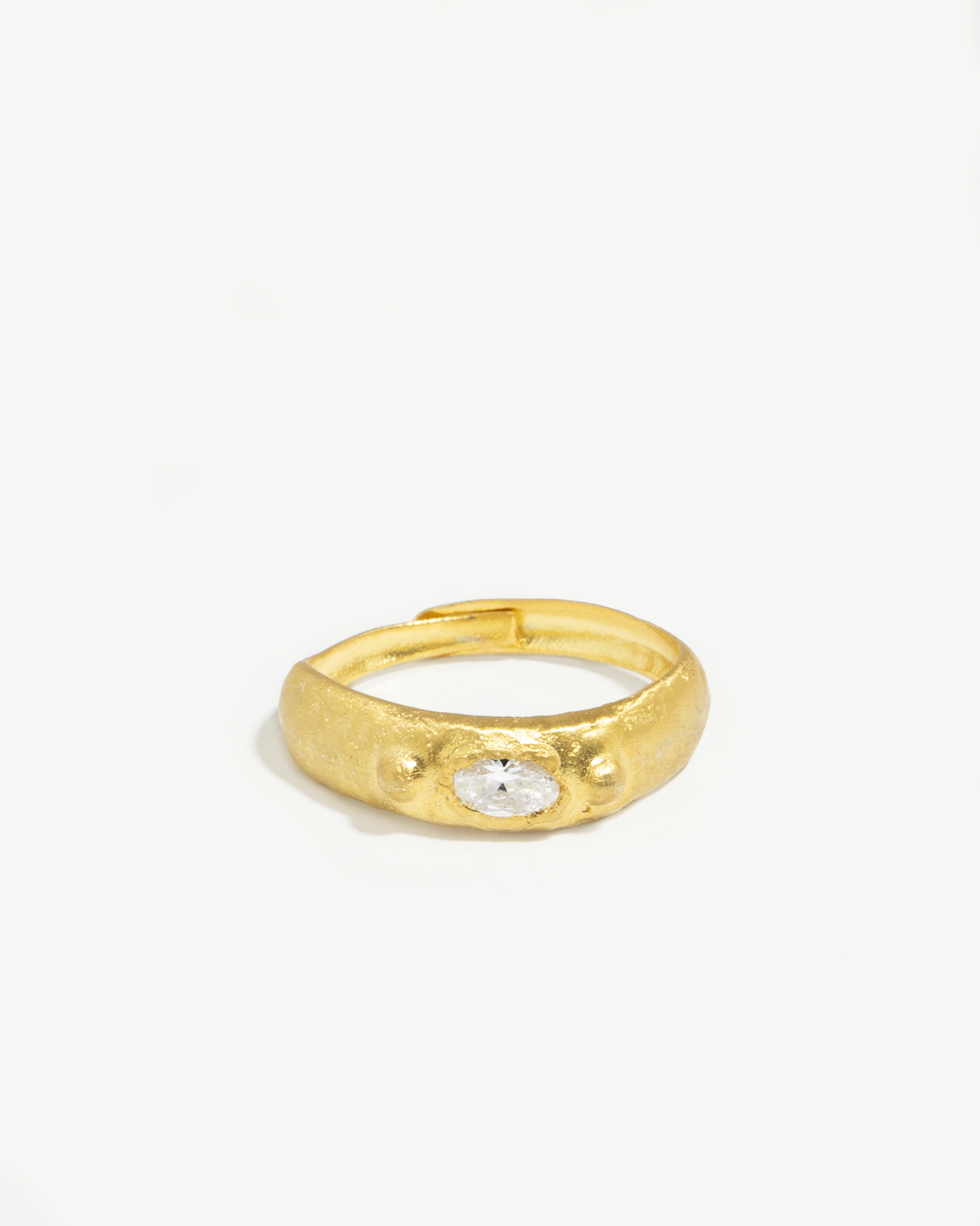 Anel em prata 925 com banho de ouro e zircónia cúbica.