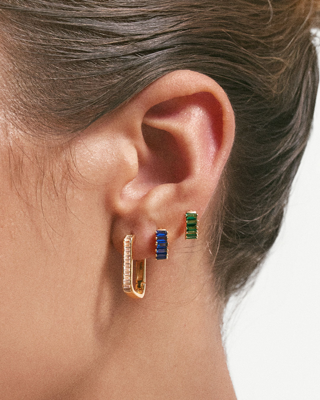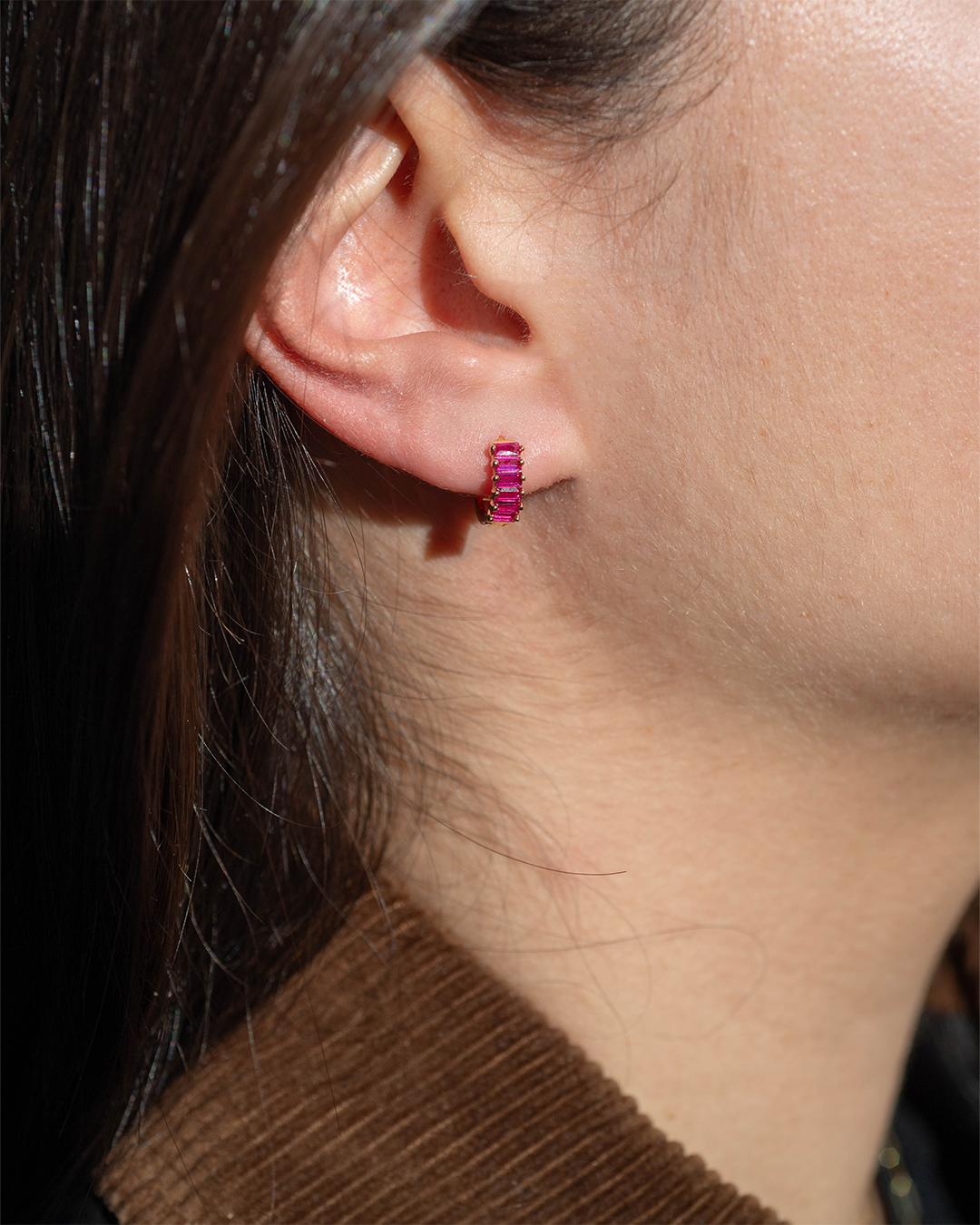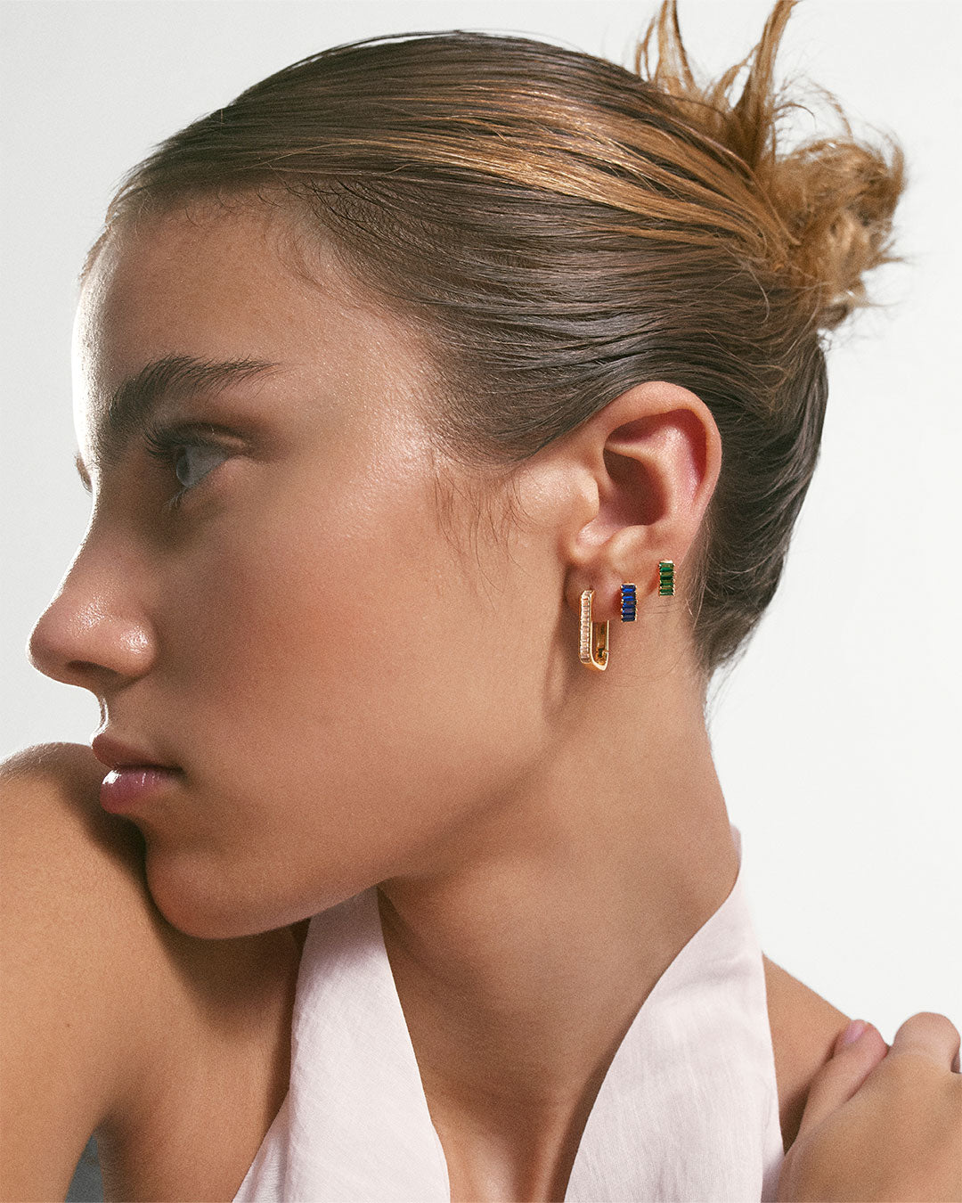 Argolas em prata 925 com banho de ouro 18K e zircónias cúbicas coloridas.