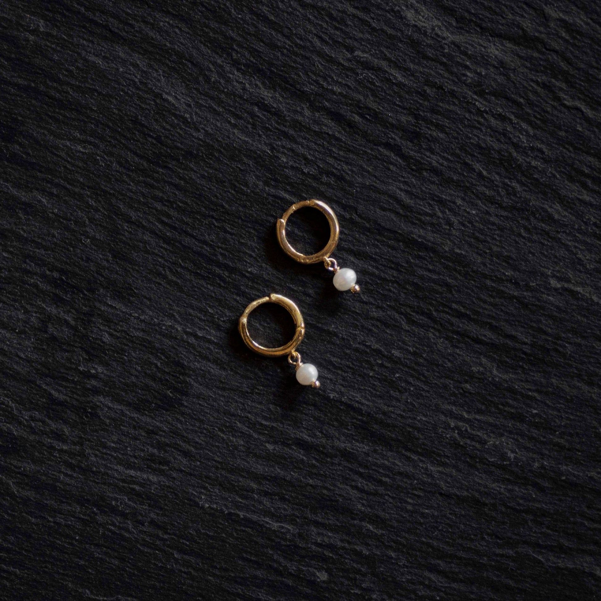Argolas em prata e banho de ouro ou ródio com pendentes em pérola natural