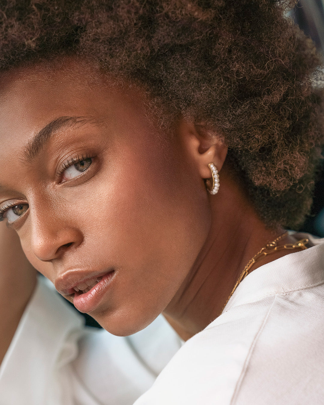 Argolas em prata 925 com banho de ouro 18K e pérolas naturais