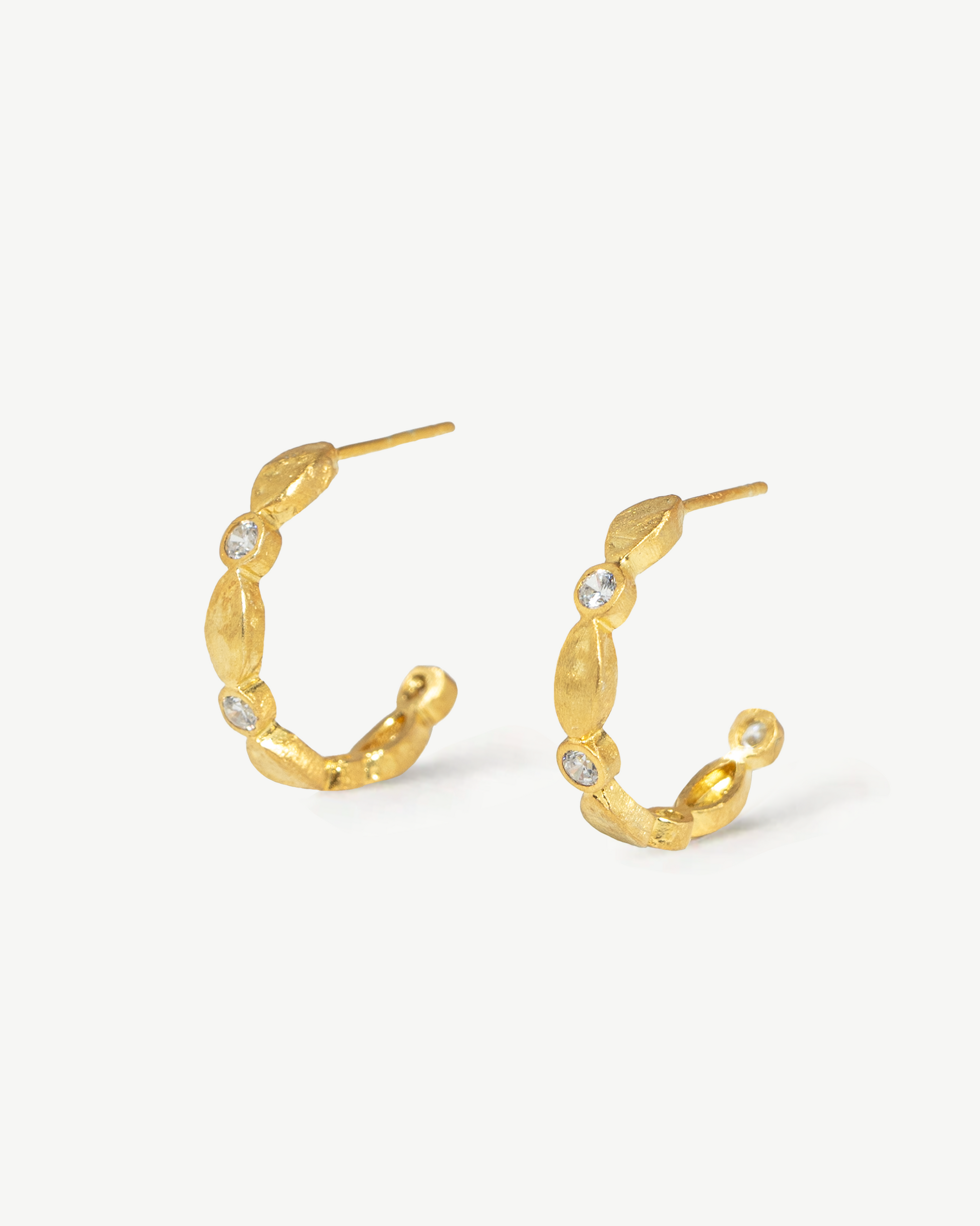 Argolas recortadas em prata 925 e banho de ouro com zircónias cúbicas.