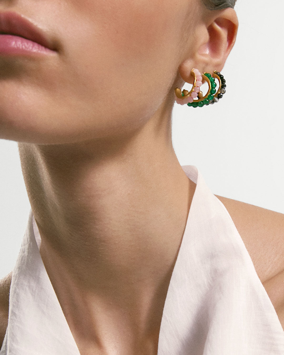 Argolas em prata 925 com banho de ouro 18K e pedras naturais coloridas.