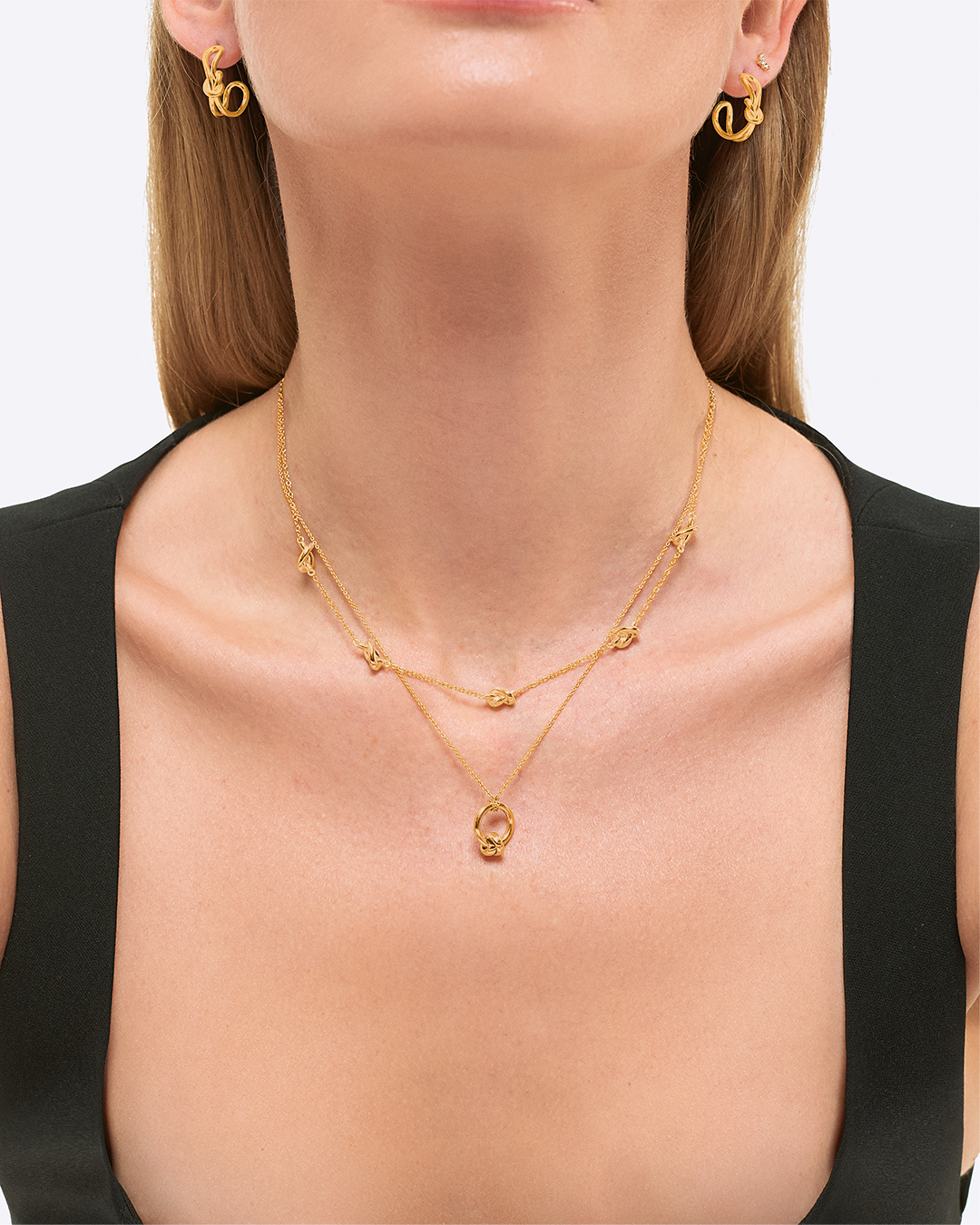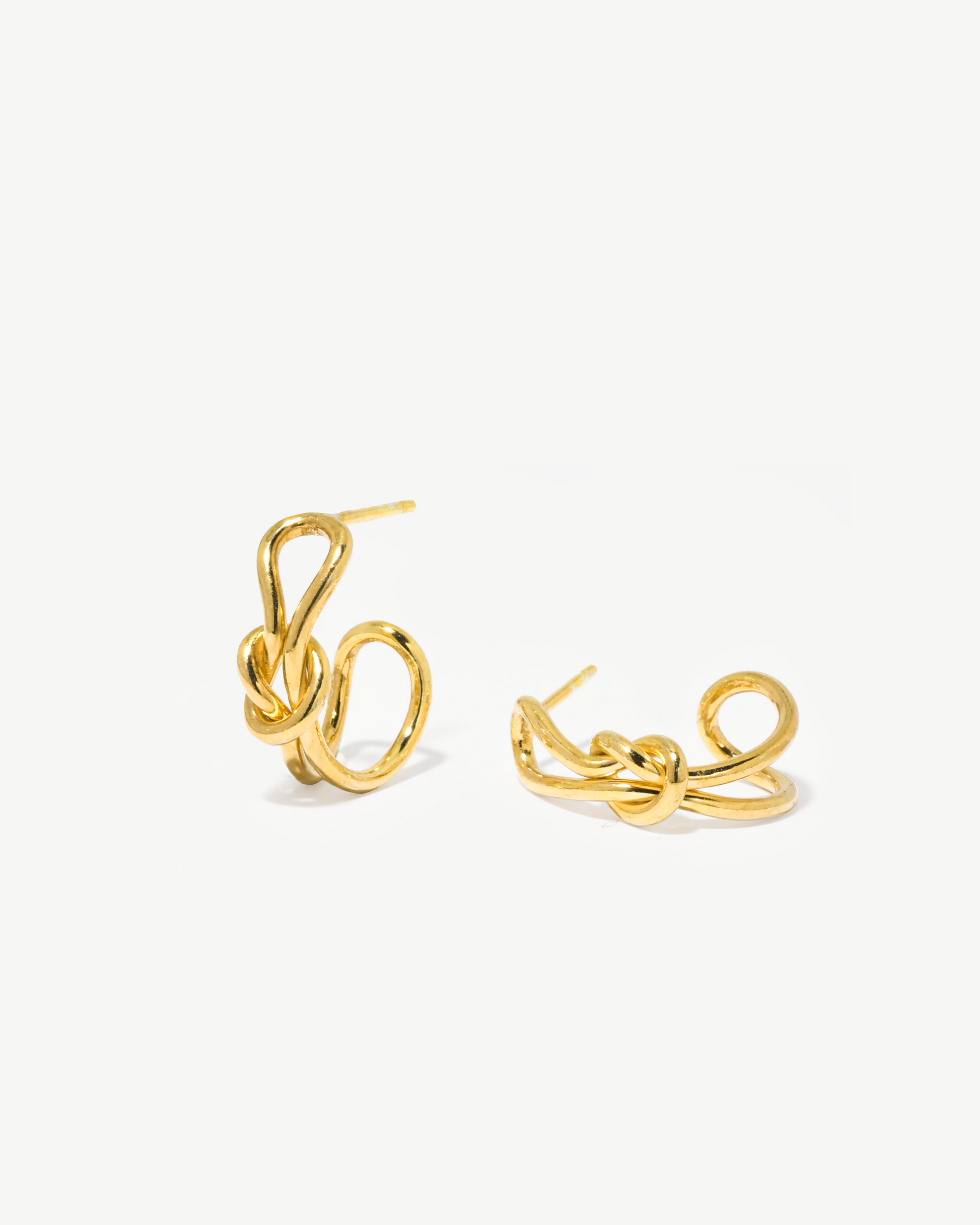 Argolas em laço com detalhe de nó feitas à mão em prata 925 com banho de ouro 18K.