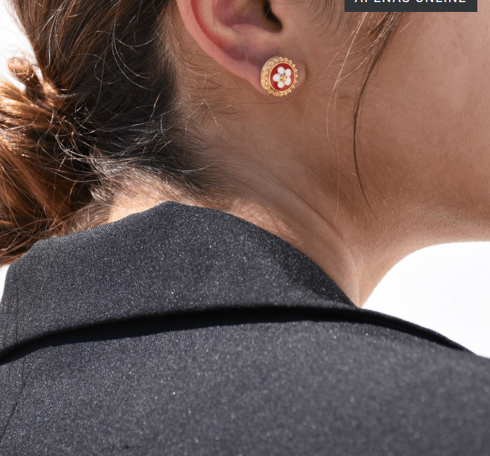 Brincos Flor Vermelha Tradicional | Aço Inoxidável Banho Ouro | Alma de Portugal