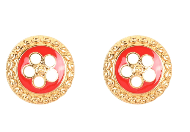 Brincos Flor Vermelha Tradicional em Aço Inoxidável com Banho a Ouro - Arte Portuguesa
