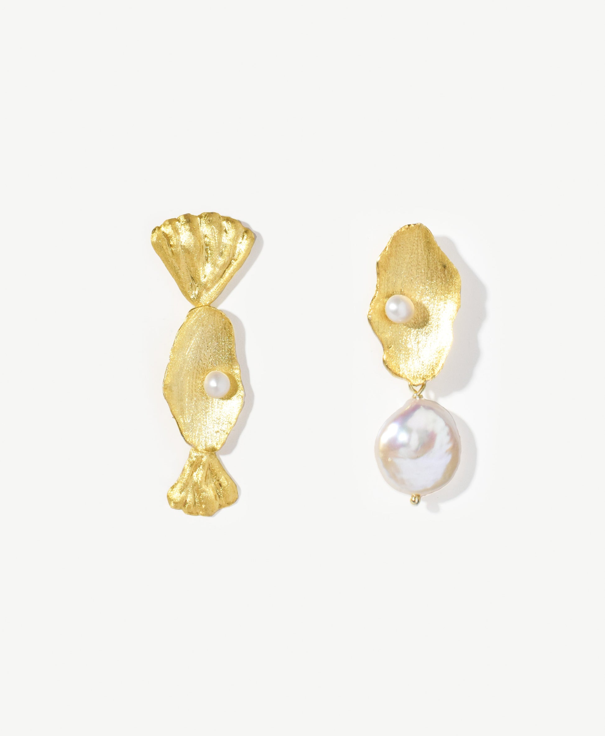 Brincos em prata 925 com banho de ouro 18K com pérolas de água fresca
