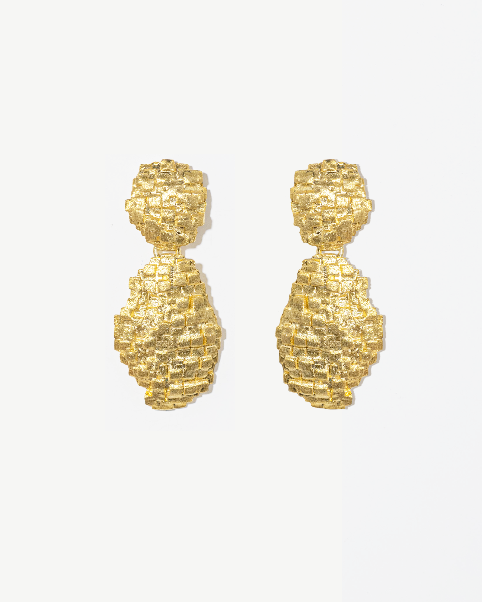Brincos tridimensionais em prata 925 com banho de ouro 18K.