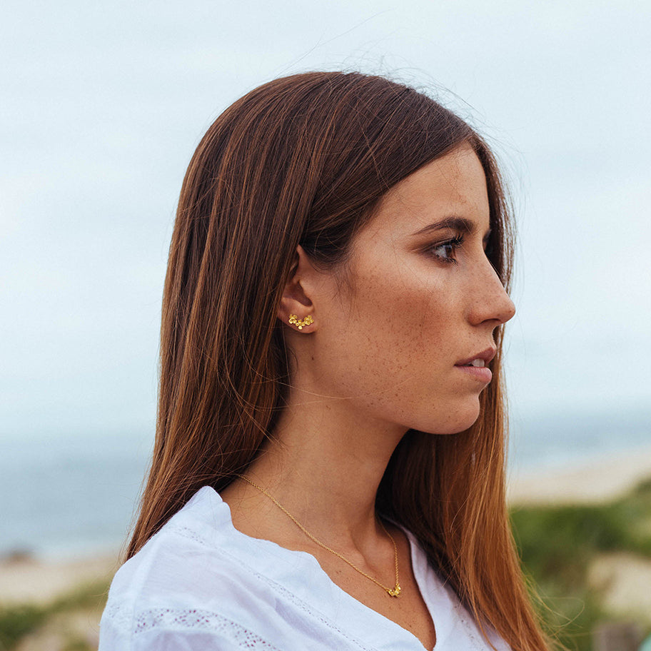 Brincos em prata e banho de ouro ou ródio com elementos florais