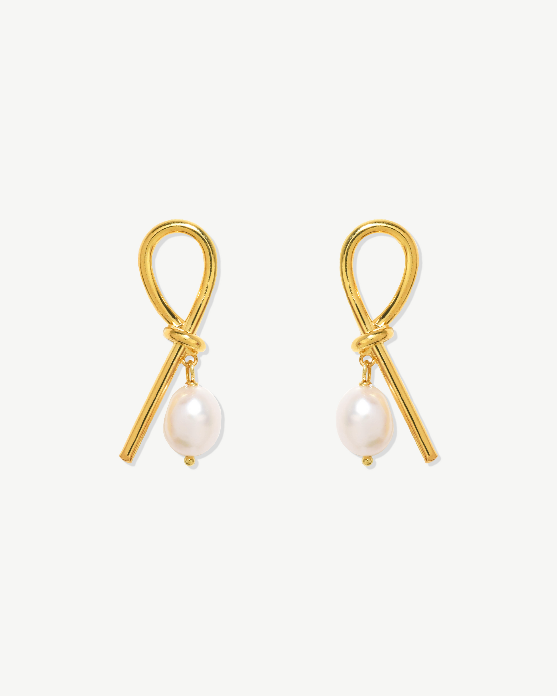 Brincos com detalhe de nó feito à mão em prata 925 com banho de ouro 18K e pérola de água doce.