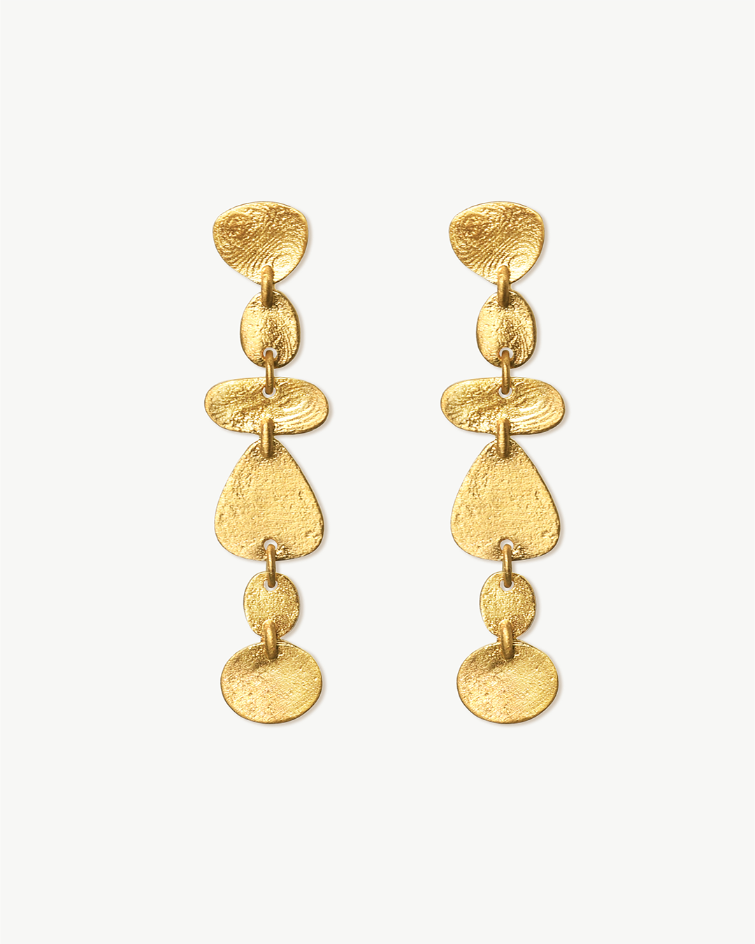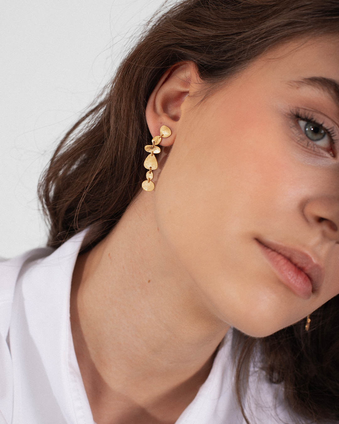 Brincos compridos articulados em prata 925 e banho de ouro 18K com formas geométricas