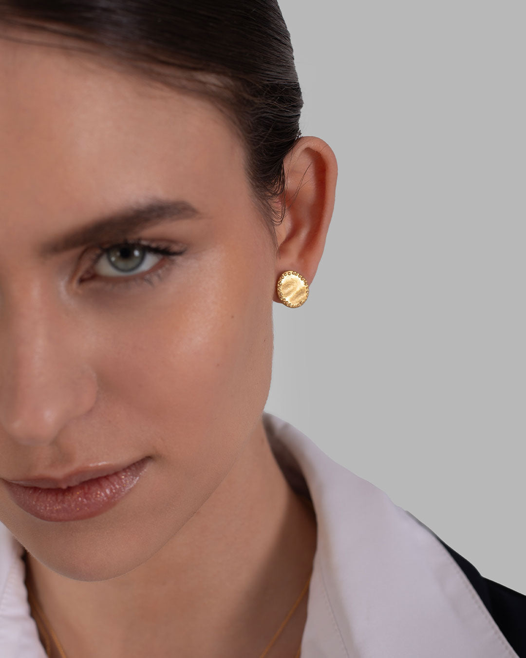 Brincos pequenos ovais em prata 925 e banho de ouro 18K com relevos.