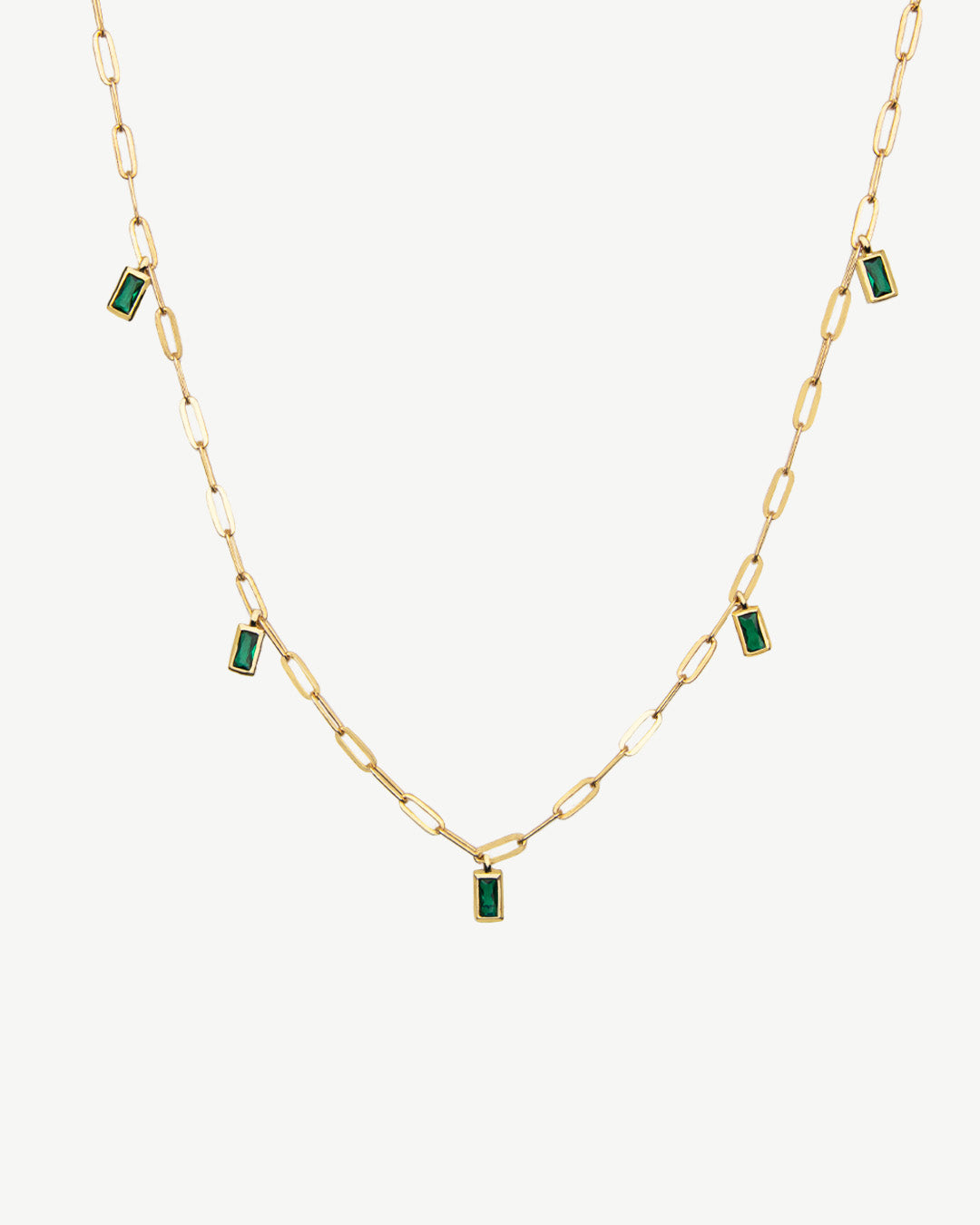 Colar em prata 925 com banho de ouro 18K e pendentes de zircónia cúbicas