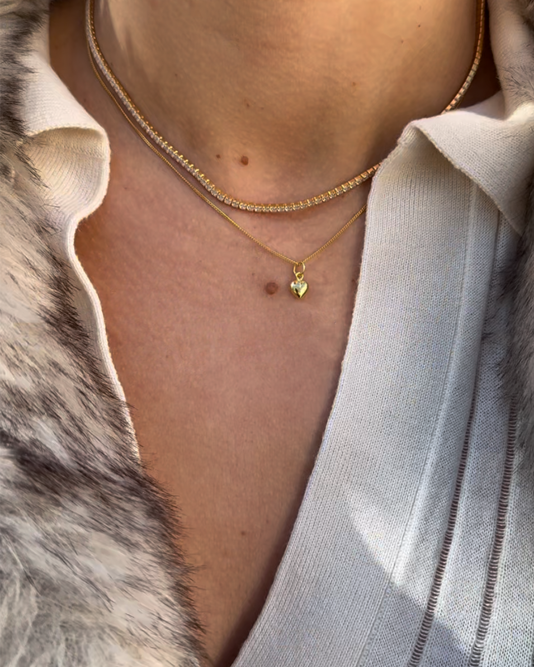 Colar em prata com banho de ouro ou ródio e pendente em coração