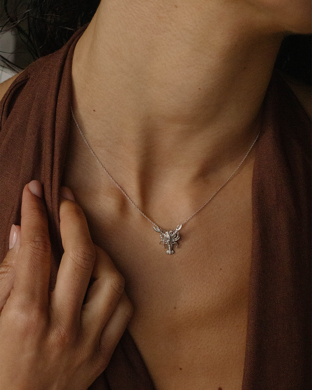 Colar com lagosta em prata 925 e banho de ouro 18k ou ródio.