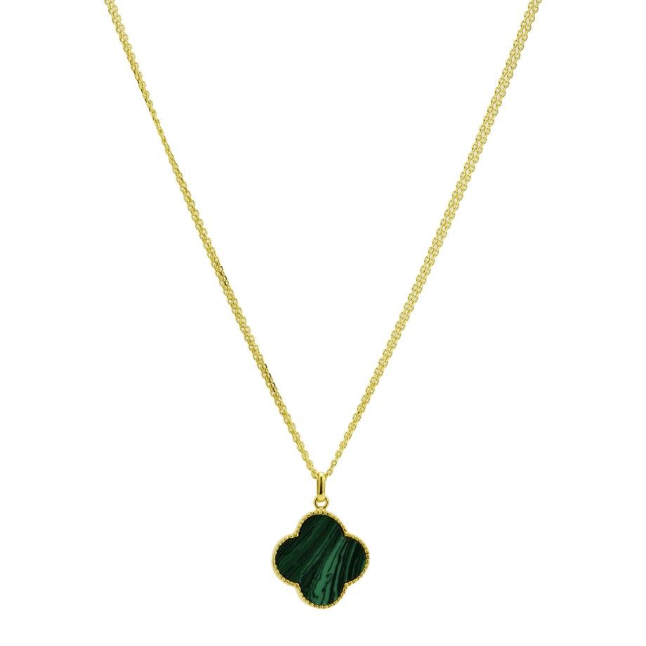 Colar Natasha - Malaquite Grande | Prata 925 Banhada a Ouro | Topázio