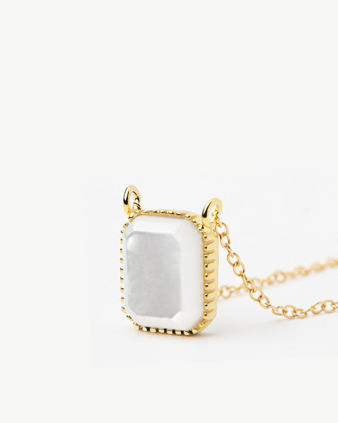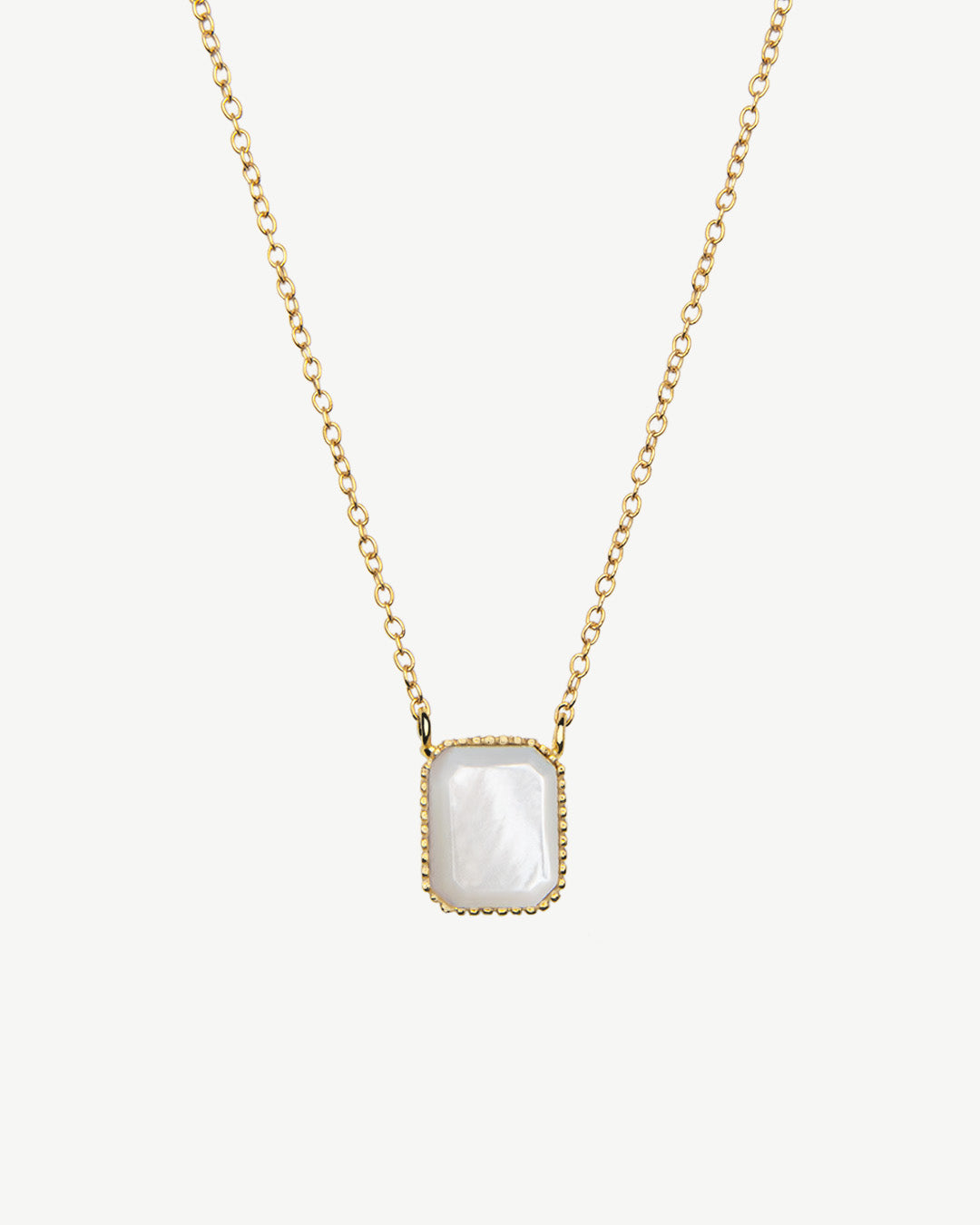 Colar em prata com banho de ouro e pendente de madrepérola quadrado.