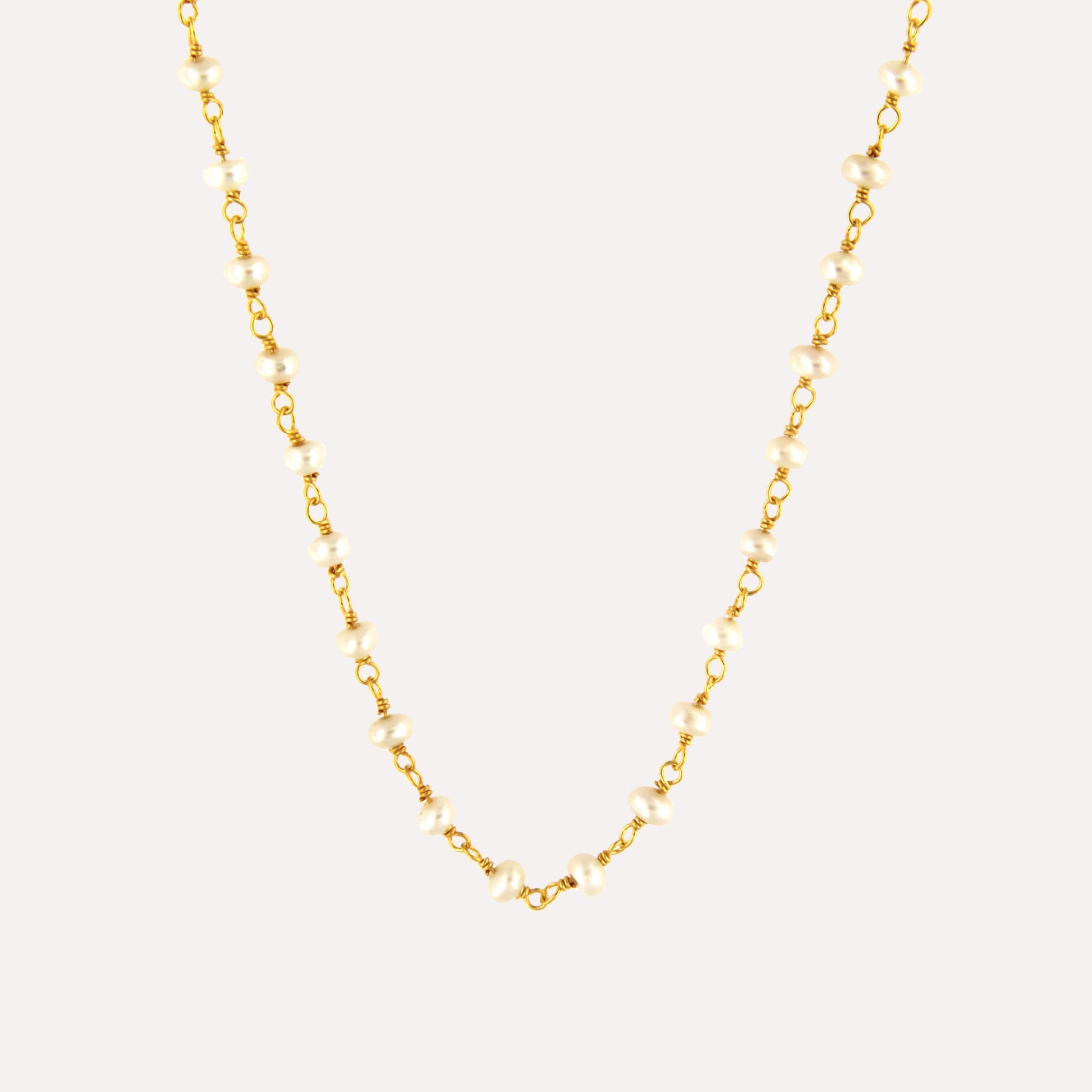 Colar em prata 925 com banho de ouro 18K e pérolas sintéticas